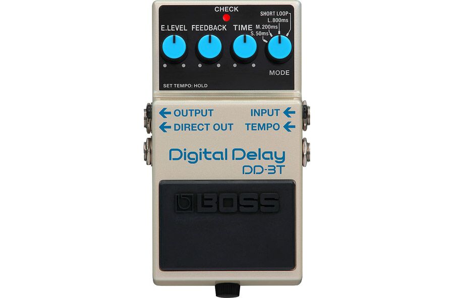 BOSS’s iconic DD-3 Digital Delay has been a pedalboard staple since 1986, loved everywhere for its great sound and simple operation. With the DD-3T, we’ve updated the classic stomp with enhanced functionality while fully retaining the original’s sound and control layout. It’s now possible to tap in delay tempos using the onboard switch or an external one, with your choice of three beat subdivisions. And the direct output jack has been moved next to the main output, providing easier connectivity for wet/dry setups.