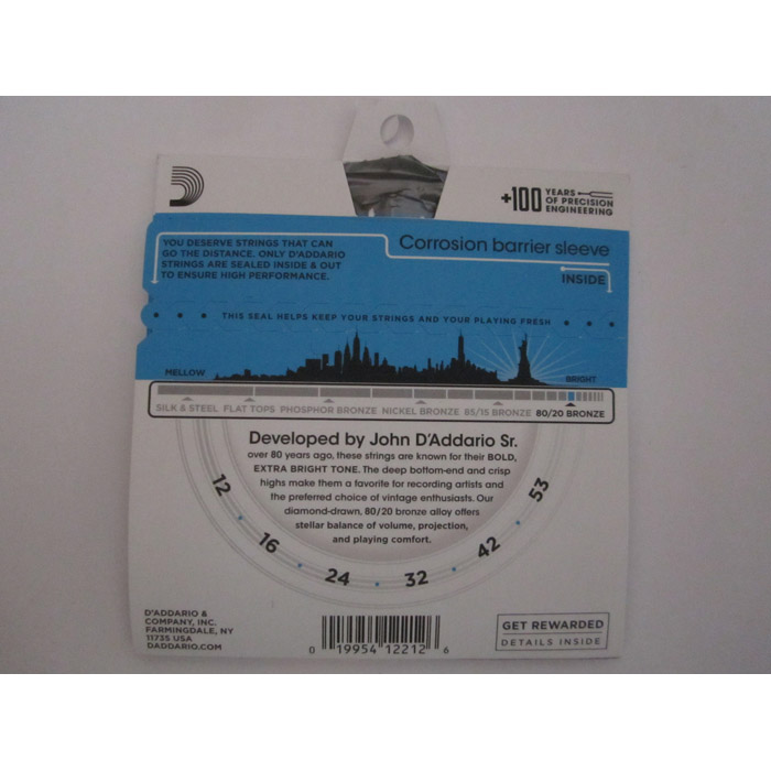 D’Addario EJ11 80/20 Bronze Acoustic Guitar Strings -.012-.053 Light