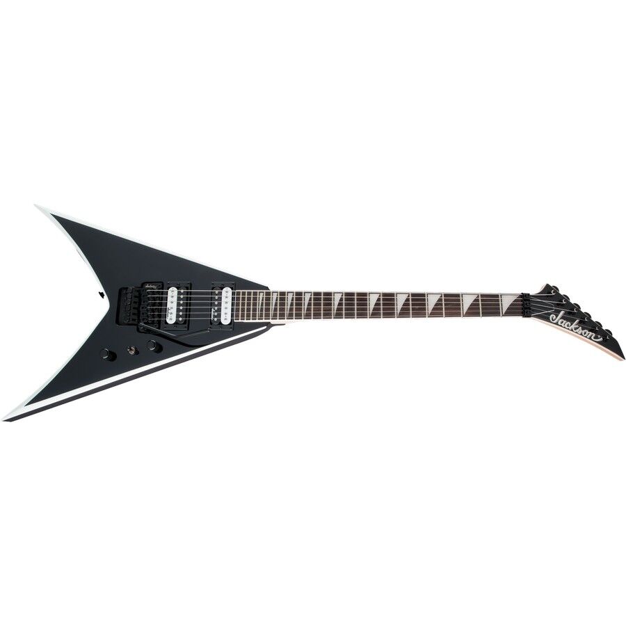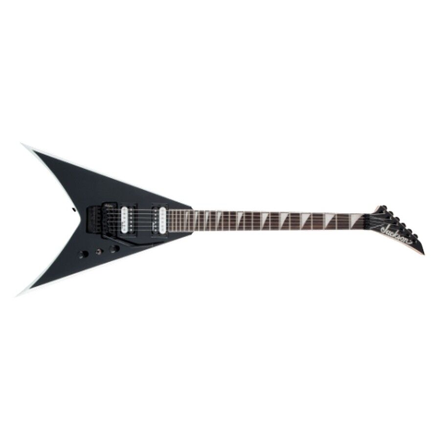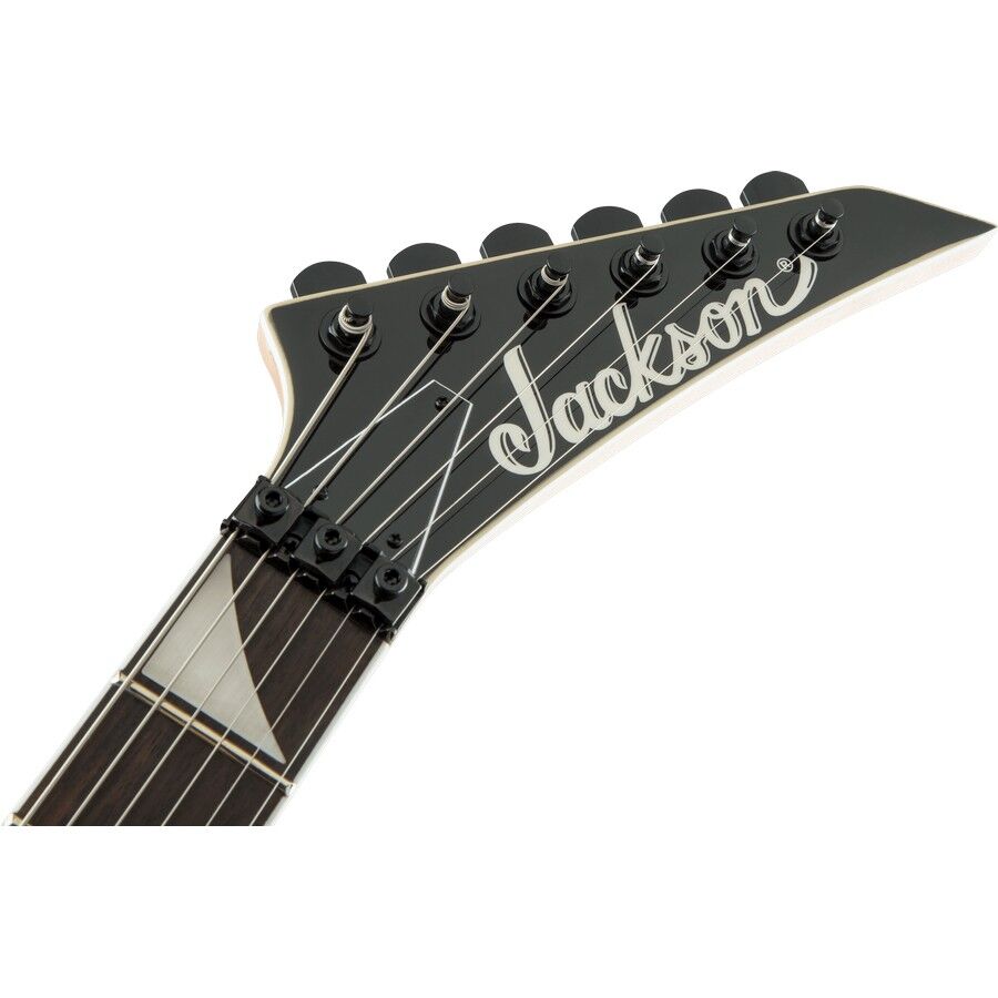 Other features include dual Jackson high-output humbucking pickups with ceramic magnets and three-way toggle switching, Jackson-branded Floyd Rose double-locking tremolo bridge, standard strap buttons and sealed die-cast tuners.