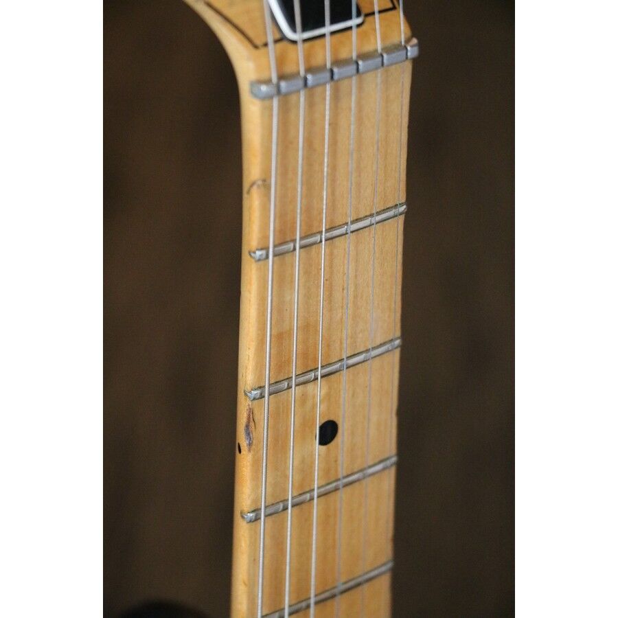 Despite the dings and marks on the body, the frets and neck are in great shape. The action and playability are very good.